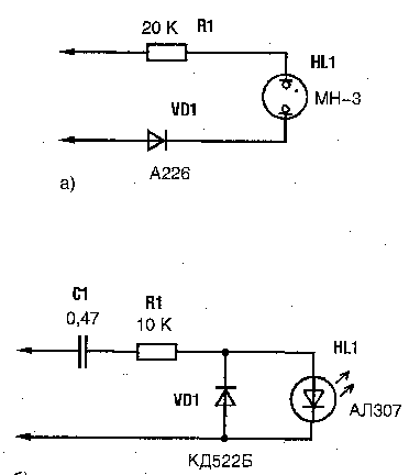 б) на светодиоде (вспышка при вызове).