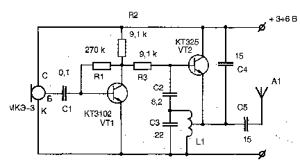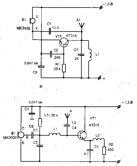 Схемы простейших радиозакладок (f-66-74 МГц) (продолжение)