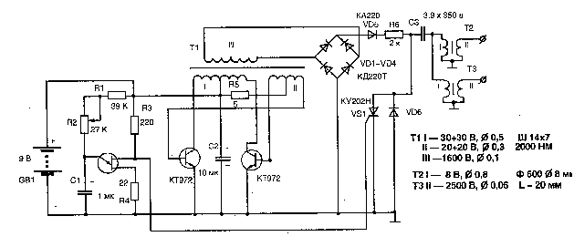 Схема электрошокера-парализатора