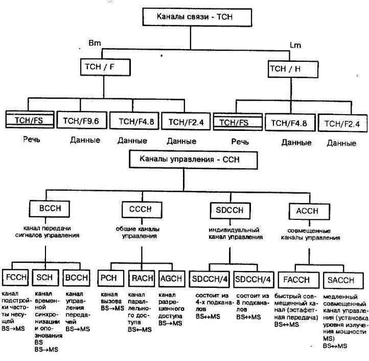 В стандарте GSM различают логические каналы связи двух основных видов: TCH/F (Full Rate Traffic Channel) - канал передачи сообщений с полной скоростью