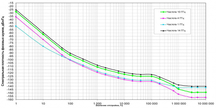 Гарантированные значения СПМ фазовых шумов (после 10 усреднений)
