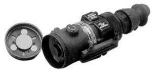Ночные прицелы для зенитных ракетных комплексов (табл. 4) имеют внешний вид, представленный на фото 5. Прицелы допускают обнаружение летательных аппаратов (самолеты, вертолеты) на значительных дальностях и имеют большое поле зрения, которое все же часто бывает недостаточным для работы по быстро перемещающимся целям. В связи с этим такие прицелы стыкуются с радиолокационной станцией обнаружения, обеспечивающей захват и сопровождение цели до того, как она окажется в поле зрения ночного прицела.