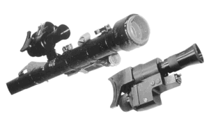Ночные прицелы для группового оружия применяются при стрельбе из станковых пулеметов и гранатометов, из безоткатных орудий (табл. 1). Типичный вид такого прицела дан на фото 4. Фактически прицелы отличаются главным образом значительным фокусным расстоянием объектива.