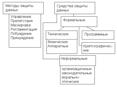 В соответствии с существующими угрозами разрабатывались методы и средства защиты данных. Классификация методов и средств защиты данных представлена на рис. 2 [1].
