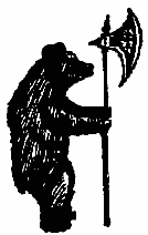 ![]() | Медведь, держащий средневековый топор с изображением трефовой масти. Указывает на медвежатника - взломщика. Может также означать, что осужденный отбывал наказание на "лесоповале" - в ИТУ, специализирующихся на заготовках леса. "Закон - тайга, черпак - норма, медведь - прокурор". |